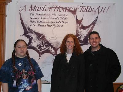 | Here's me, Mike, and Heather hanging out by a photo of Jim McCloy & Ray Miller (above left), and a new Jersey Devil action figure (above center). |