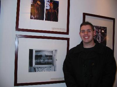 | Mike is standing right next to his favorite painting - the one that is missing from the New Gretna tavern. Over his head, notice the photos of the Jersey Devil skeletons. Those are, by the way, not real. |