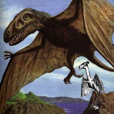 This image, submitted by Peter Ray, is a comparison of the commonly known Jersey Devil sketch and its possible dinosaur ancestors.