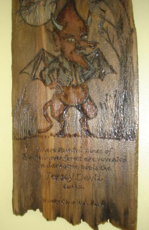 Here is a great woodburning done of the Ed Sheetz image of the Jersey Devil. Thanks to Mike for submitting this image!