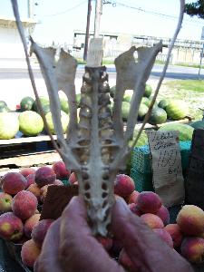 | In Winslow Township, NJ, for the price of $1, you can stop by a local fruitstand and have a look at what the owner claims is the skull of the Jersey Devil. The origins of the skull are still up for questioning. Have a look at the images below for a free glimpse of the skull. |