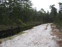 We all threw on our gear and Jeff brought out a ridiculously cool video camera to capture the day's events. The place we had picked couldn't have been better. We walked down a sandy path that ran alongside a channel that appeared to have been intentionally created as some sort of irrigation system. This place had great atmosphere, it looked like it was the poster image for a Pine Barrens pamphlet. We hiked down the trails a bit, encountering some deer footprints, as well as some others that we were unable to identify - most likely a large dog or something of the sort. It had been mildly raining off and on, so the tracks weren't very clear and had been affected by the rain.