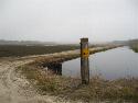 After walking along the trails for a little while, we came to the clearing and got a glimpse of a pretty impressive sight. We were standing on the edge of a giant stretch of cranberry bogs. We had known previously that they were out here, and I have driven past cranberry bogs many times, but standing at the edge of it was quite impressive. It was huge and stretched on almost as far as the eye could see. The channel that we had walked along was feeding into the maze of channels used to irrigate the cranberry bogs. We walked up to the edge of one of the bogs and looked down to see some cranberries that had been left there from the previous harvest. It was quite interesting to see.