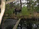 The most startling sound of the evening came from behind me when I was helping Charley set up the microphone on the night vision. We had been huddled up in a semi-circle at the time, and I had my back turned on the bogs. Suddenly we heard a splashing and a simultaneous bang in the water behind us (approximately 8 - 10 feet from where we were standing). We flipped the lights on and tried to identify the source of the noise, but none of us could. I'm not sure what it was, but it was surprising at the time. We didn't hear that noise again for the rest of the evening.